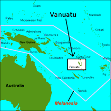 Vanuatu, officially the Republic of Vanuatu (French: République de Vanuatu, Bislama: Ripablik blong Vanuatu), is an island nation located in the South Pacific Ocean. The archipelago, which is of volcanic origin, is some 1,750 kilometres (1,090 mi) east of northern Australia, 500 kilometres (310 mi) northeast of New Caledonia, west of Fiji, and southeast of the Solomon Islands, near New Guinea.